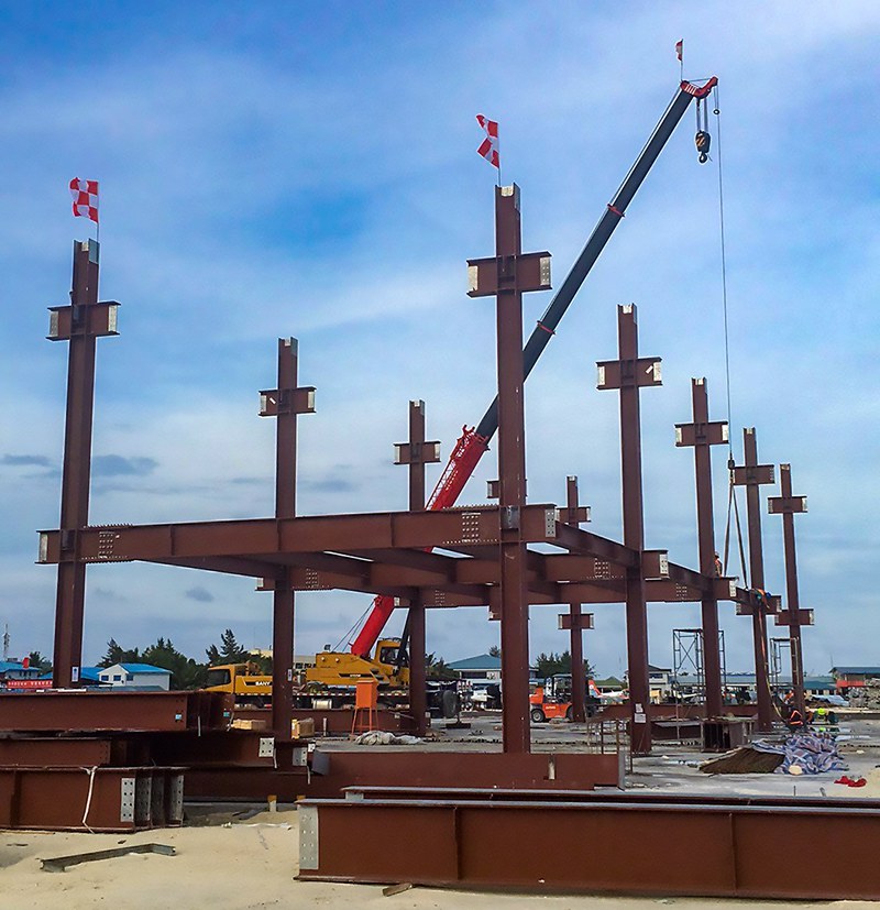 Based on its advantages and strength in the field of steel structure, Jinggong Steel International participated in the construction of the “The Belt and Road” key project of the seaplane supporting facilities at the Velana International Airport in Maldives, responsible for the design, fabrication and installation.